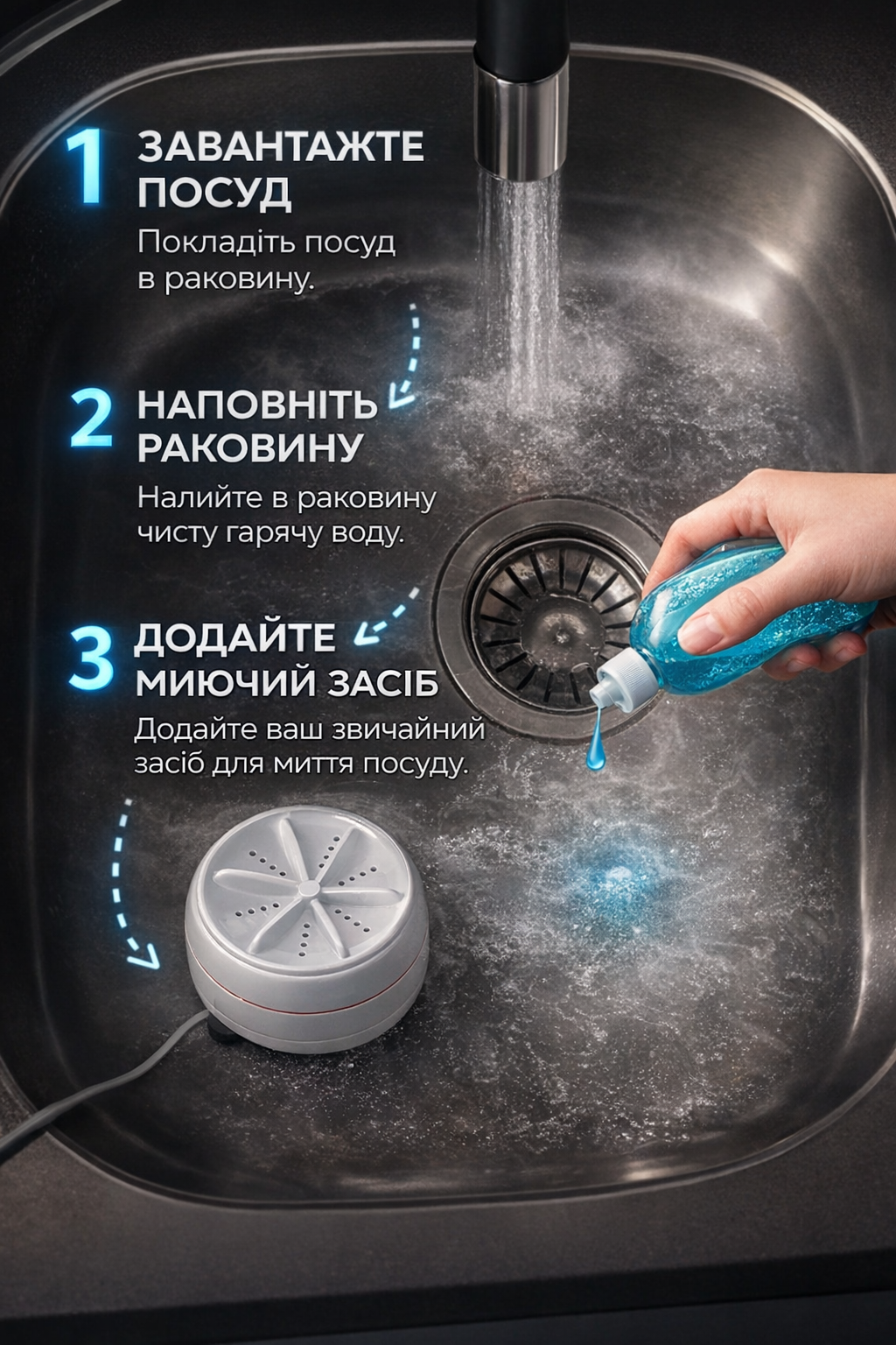 Cyclone — це портативний міні-девайс, який перетворює звичайну раковину на ефективну систему миття.