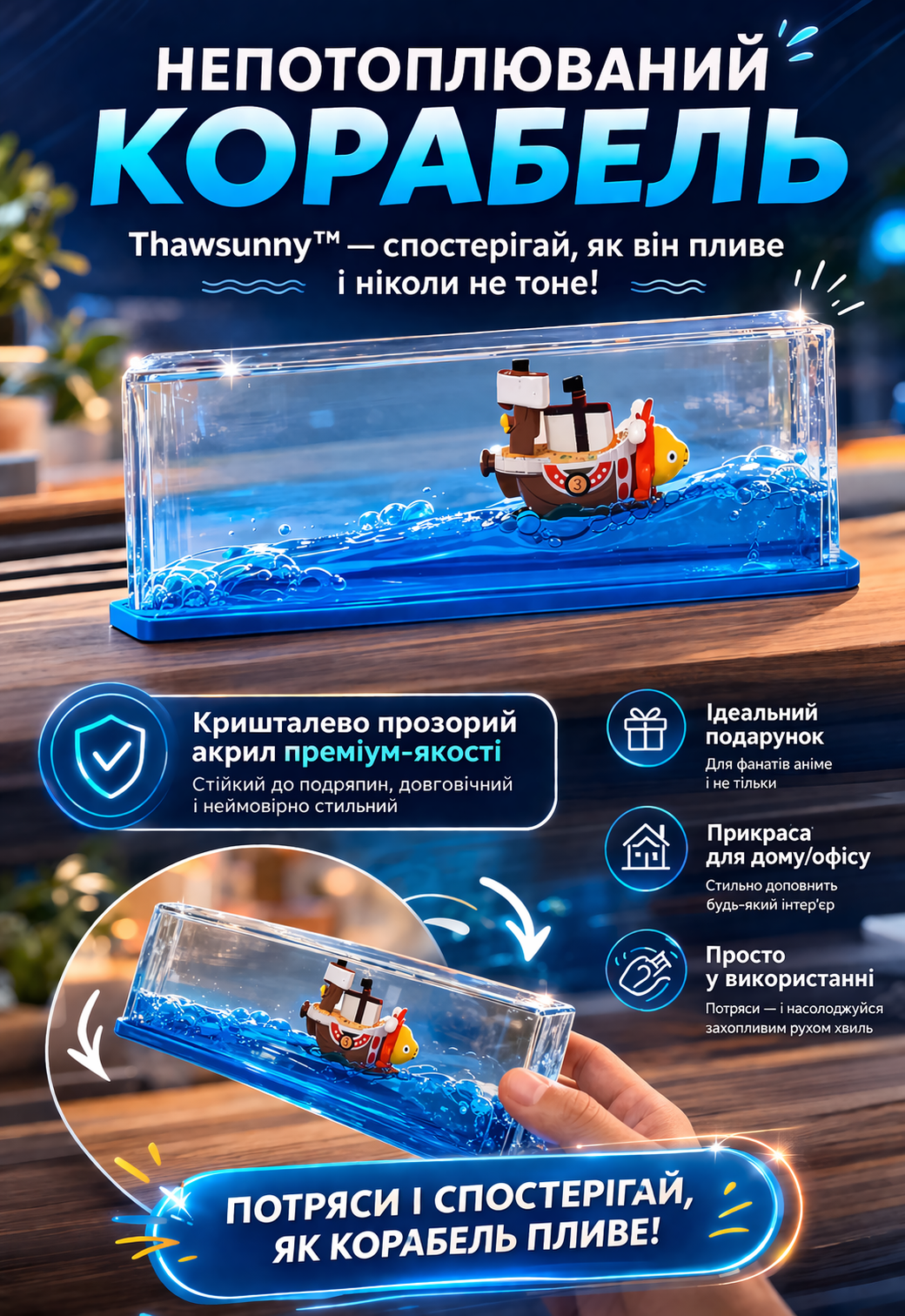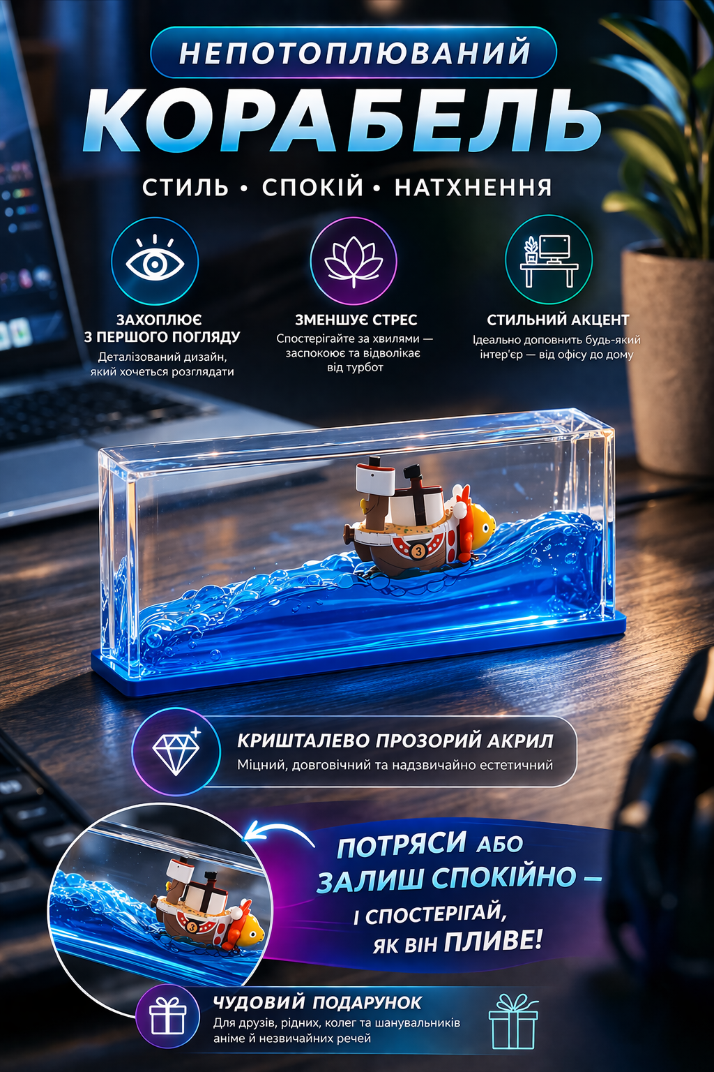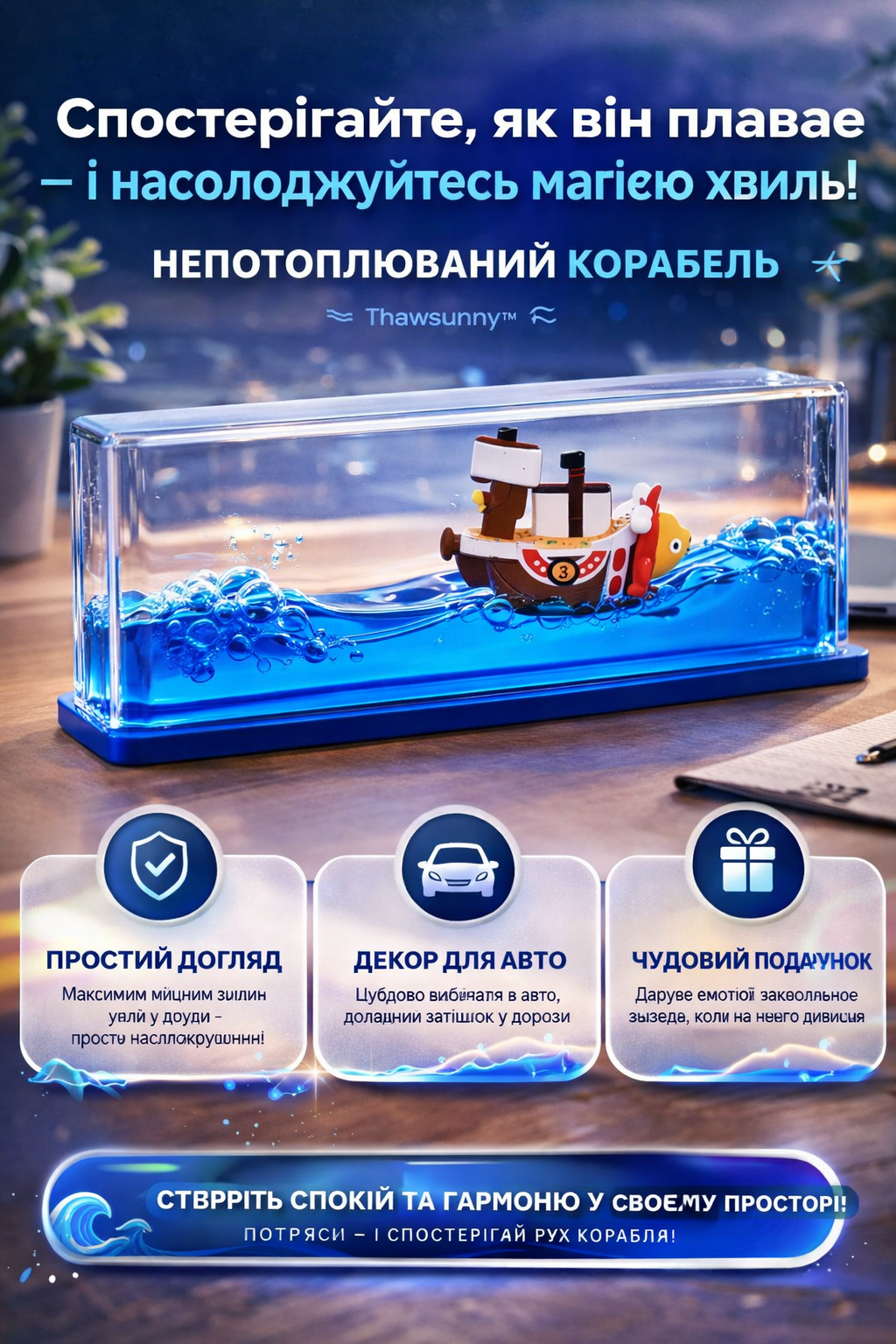 Спостерігай, як корабель плавно рухається хвилями — і відчувай, як стрес зникає.