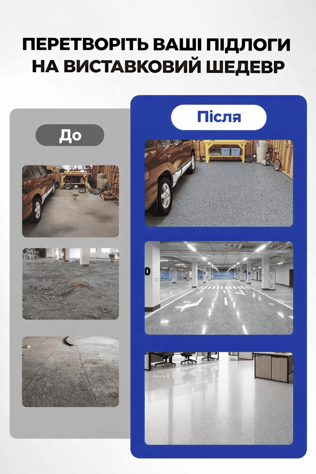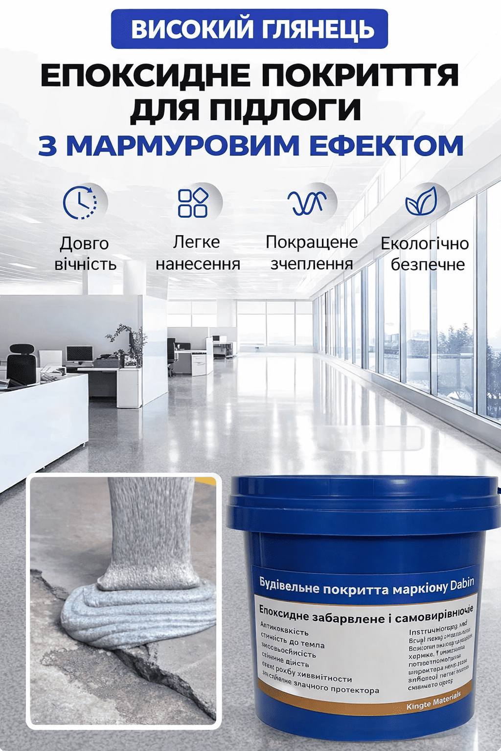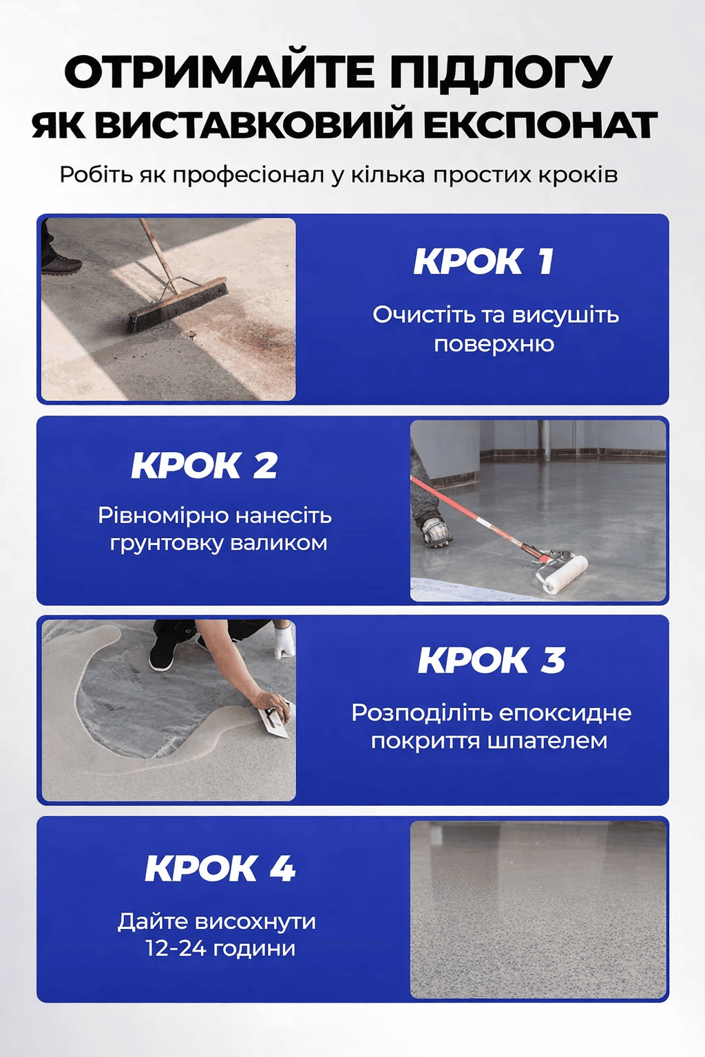 Перетворіть звичайну підлогу на стильне та міцне покриття з глянцевим ефектом. Епоксидна фарба створює рівну поверхню, яка виглядає сучасно та легко очищується. Покриття витримує щоденне навантаження, не боїться вологи та довго зберігає свій вигляд.