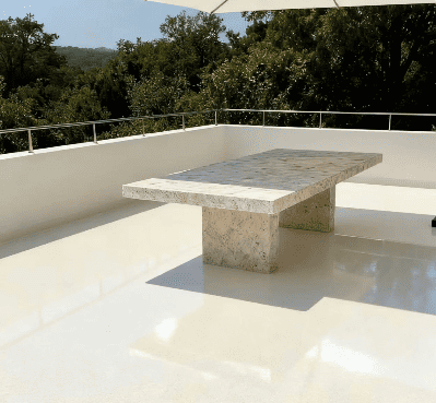 Пил і сліди від дощу просто витираються, а покриття виглядає дуже міцним. Воно вже пережило кілька сильних дощів і досі виглядає як нове. Поверхня гладка та якісна. Тепер наша зона для вечерь на терасі виглядає набагато краще, усі гості питають, чим ми зробили підлогу. Рекомендую! 10/10.