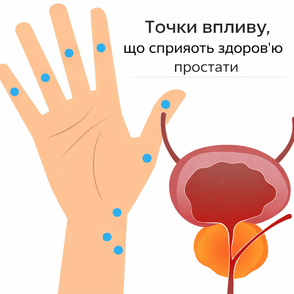 Акупресура на пальцях — це метод традиційної китайської медицини, який може значно покращити здоров’я простати, впливаючи на спеціальні точки, пов’язані з передміхуровою залозою. Натискання на ці точки стимулює нервову систему та покращує кровообіг, зменшує запалення і сприяє природним процесам відновлення.