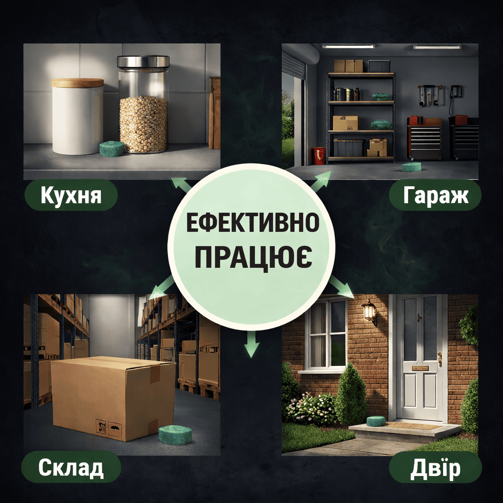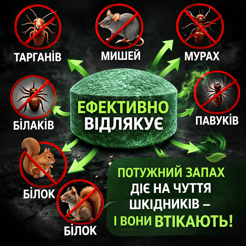 Купив для гаража, бо часто з’являлись миші. Поклав кілька таблеток по кутах — через кілька днів вже не бачив жодної. Працює добре.